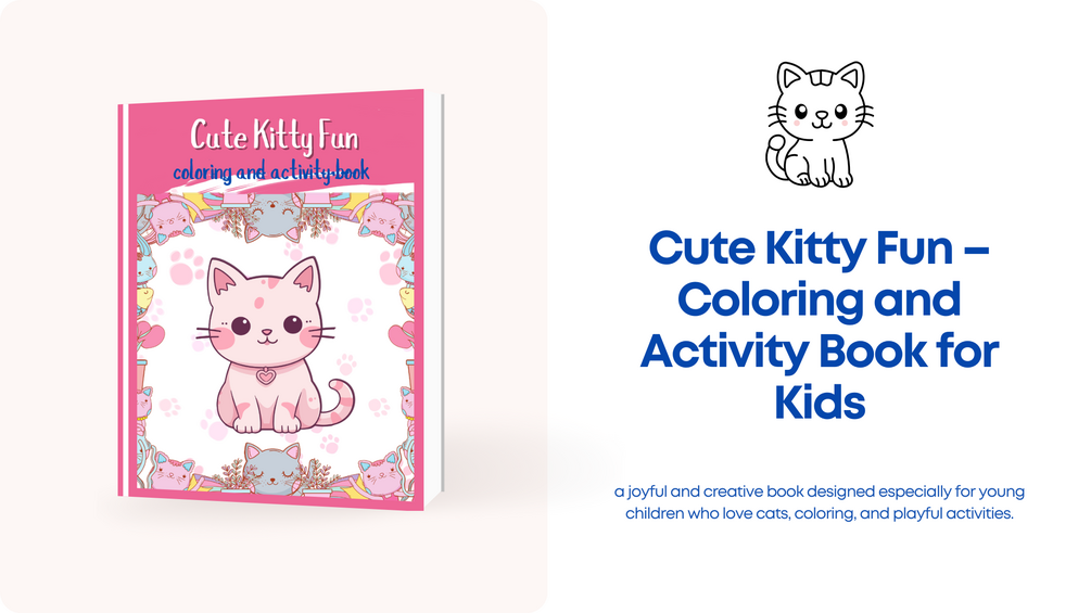 A cute and playful kitty-themed coloring and activity book that helps children learn, relax, and express creativity through fun illustrations and engaging activities.